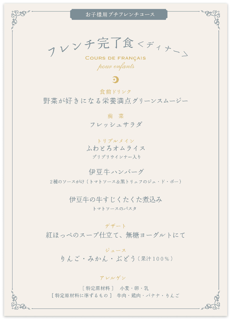 4/親子で笑顔の時間【お子様フレンチ編】(オプションメニュー)