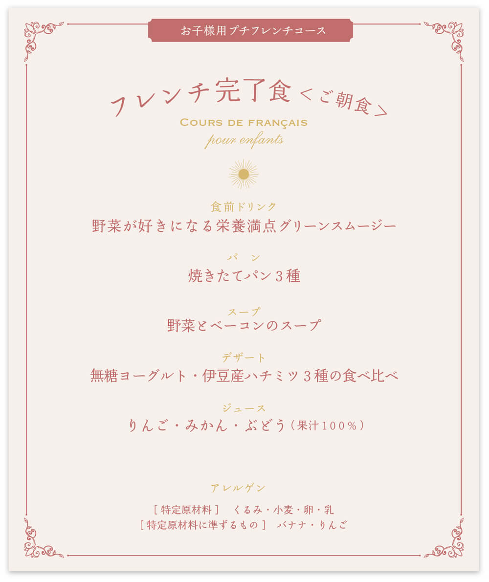 朝のひとときにも、美食体験を親子でご堪能ください。